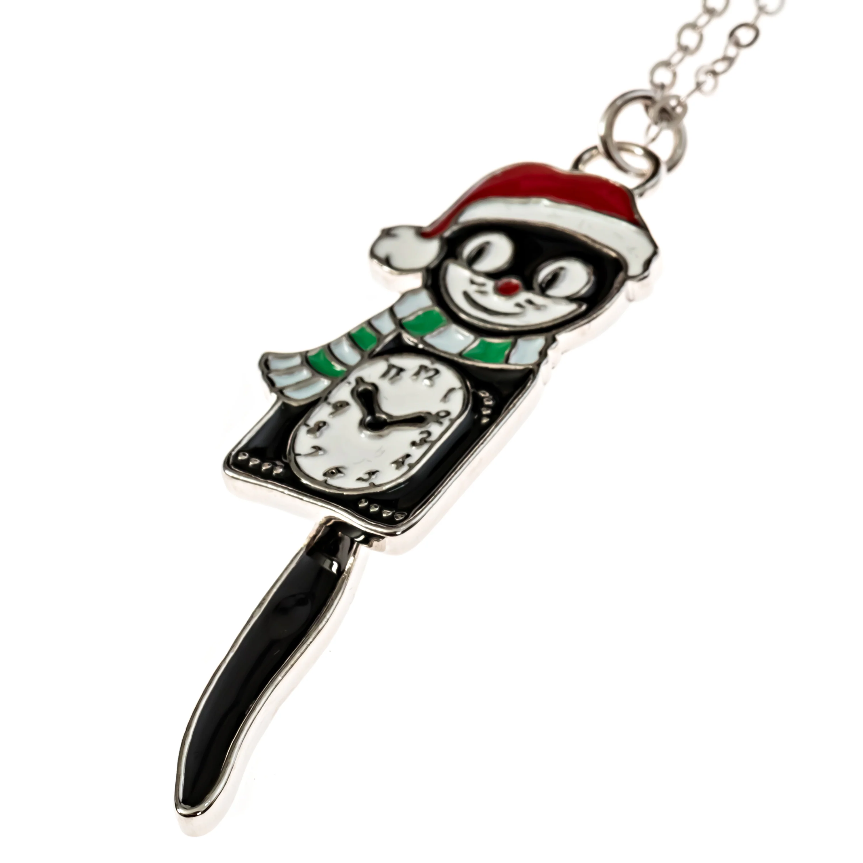 A high quality necklace featuring Kit-Cat Klock in festive Christmas attire.