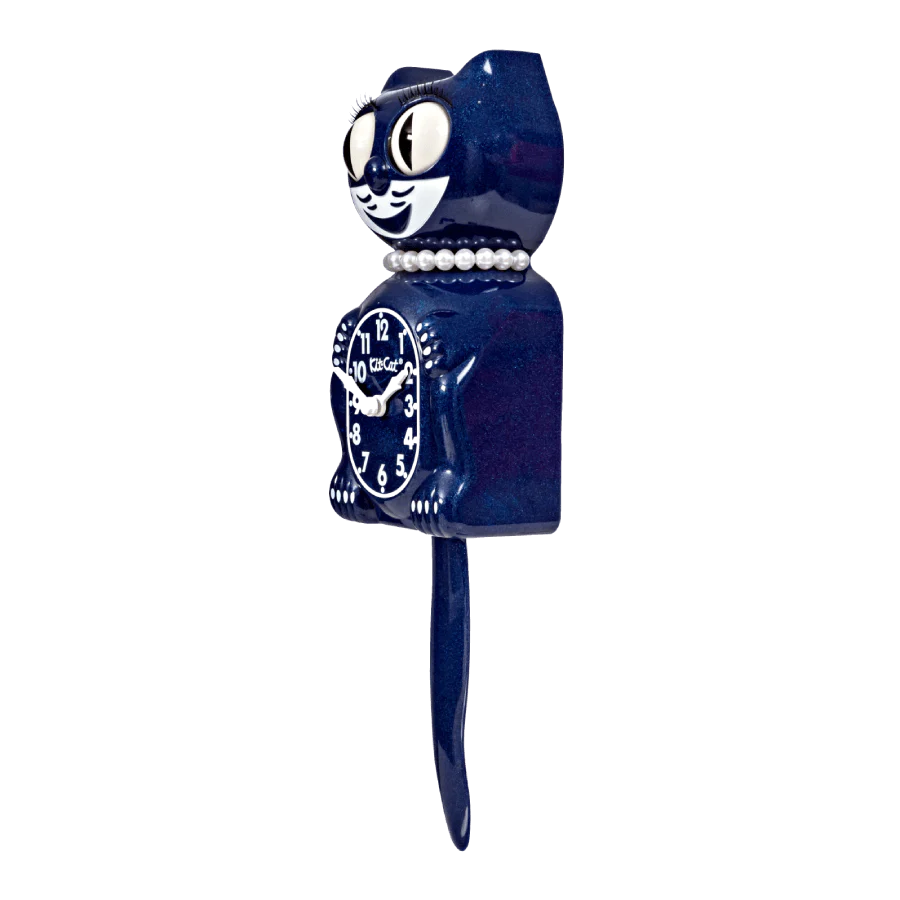 Galaxy Blue Kit-Cat Klocks are sure to spark a smile!  Using a new manufacturing technique each Kit-Cat has Metallic Glitter embedded in the body and tail.  This deep blue color coupled with a glitter shine creates an eye-catching look reminiscent of the stars in the night sky.  This Original size Limited Edition stands 15.5” tall, head to tail.  His rolling eyes, wagging tail, and contagious smile are sure to bring joy, laughter, and memories to any room.  Kit-Cat Klocks® have been made in America exclusively by the California Clock Company since 1932.  Each Limited Edition color is made for only one year before being retired forever. Â